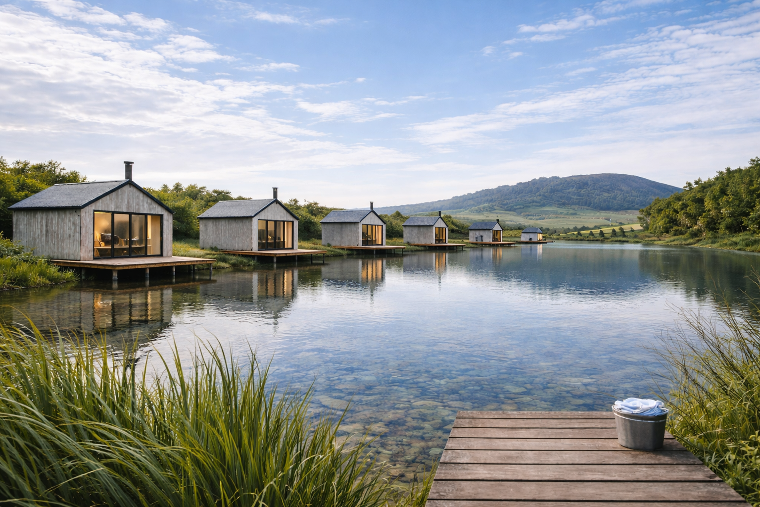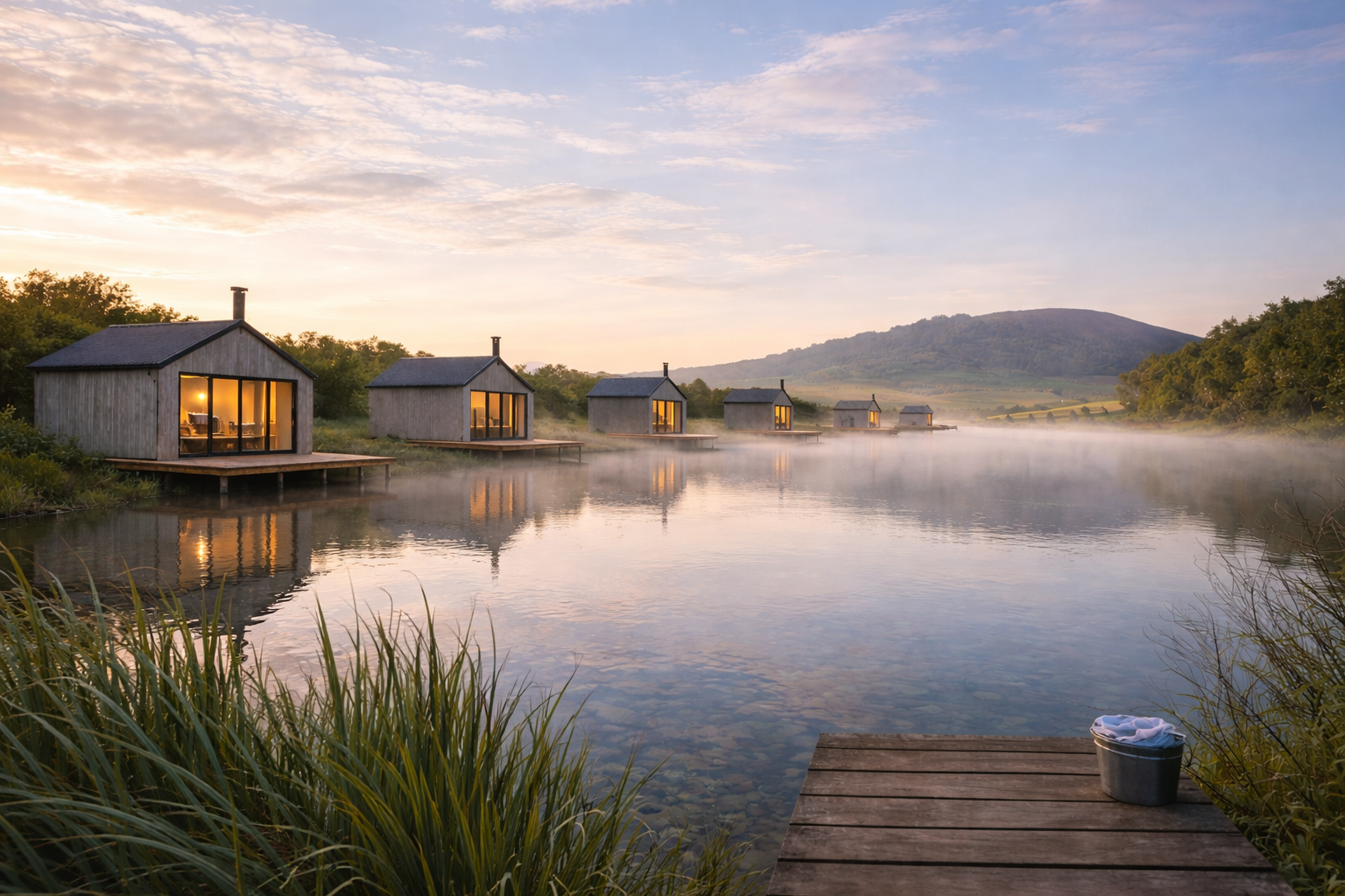 The Basecamp Lakeside Cabins are eco-led cabins set on our working farm and wetland reserve, overlooking a private lake with open views of Mell Fell and Blencathra Mountains.