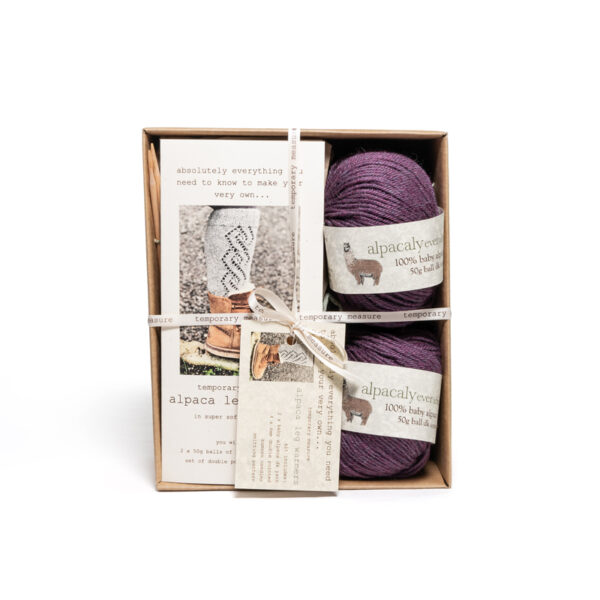 Kit includes: 2 x 50g dk baby alpaca yarn, bamboo needles, tapestry needle & knitting pattern.