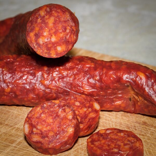 “Indulge in the savoury delight of our artisanal salami sticks! Made with the finest cuts of meat and carefully seasoned with aromatic spices, these flavorful snacks are perfect for on-the-go enjoyment or as an appetizing addition to any charcuterie board. Savour the rich, smoky taste and satisfying texture of our salami sticks, a true meat lover’s delight.”