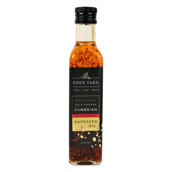 Award-winning, cold pressed, extra virgin rapeseed oil for cooking infused with Chilli Oil, grown in the Eden Valley.