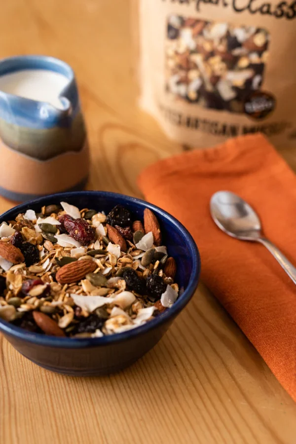“Named in honour of the genius who first introduced us to the toasted muesli revolution, we present: The Artman Classic, brimming with ALMONDS, CRANBERRIES, PUMPKIN SEEDS & RAISINS
