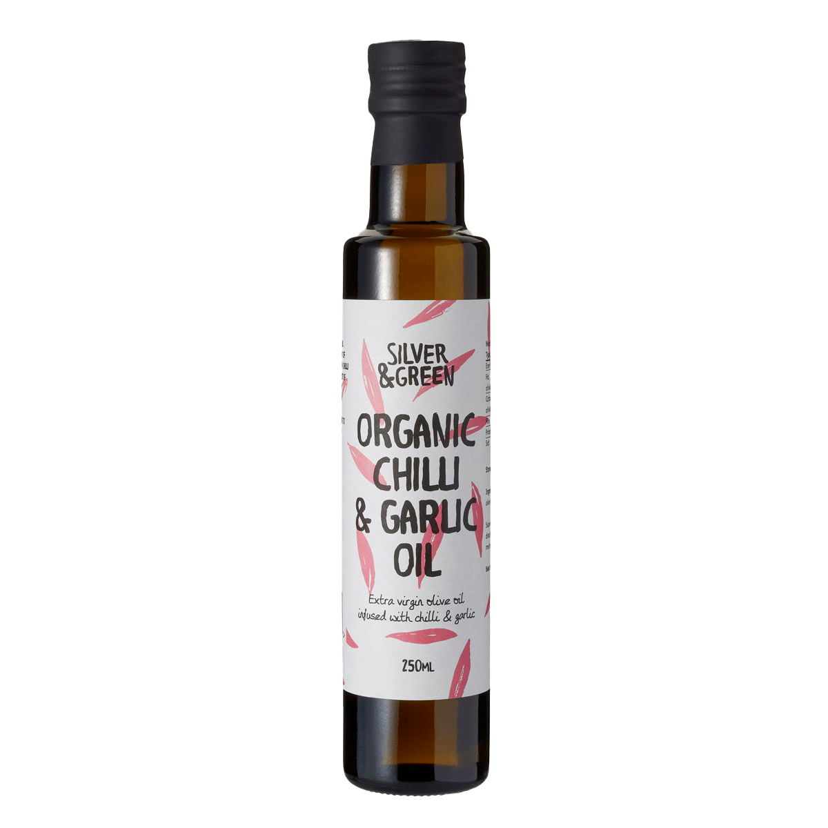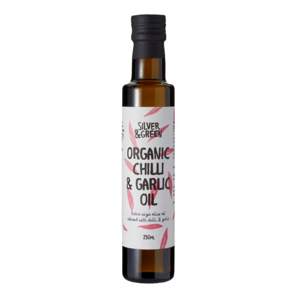 Organic extra virgin olive oil infused with fresh chilli and garlic.