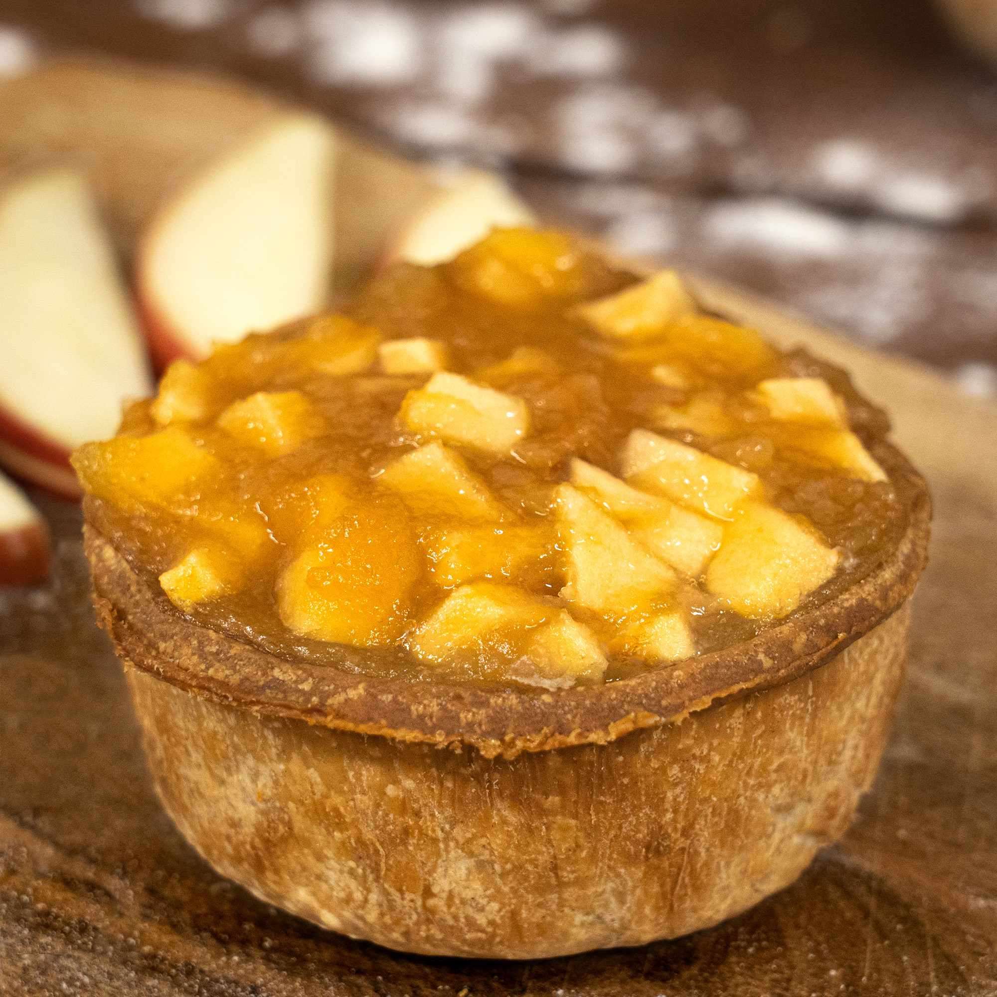 Ingredients: Pork, Apple, Pastry (Wheat Flour, Gluten, Milk, Eggs, Soya, Celery).